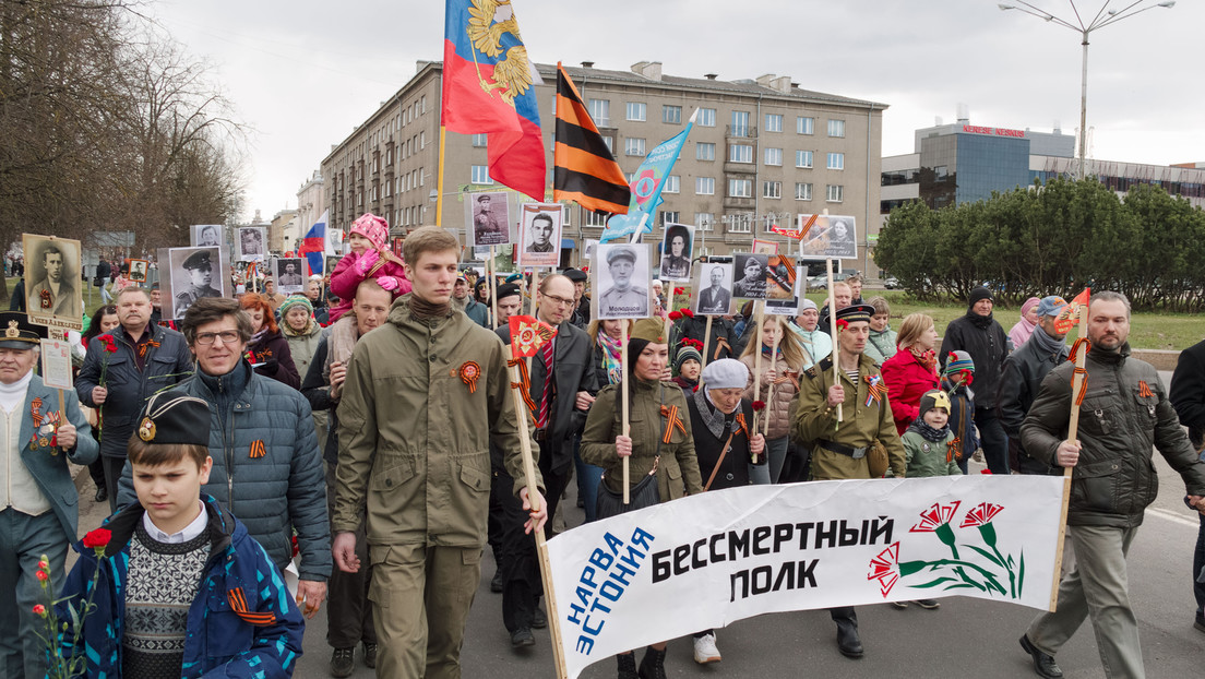 Die Einwohner von Narwa nehmen im Jahr 2017 am Marsch "Unsterbliches Regiment" zum 9. Mai, dem Tag des Sieges, teil. Bild: Sputnik / Jewgenij Aschichmin