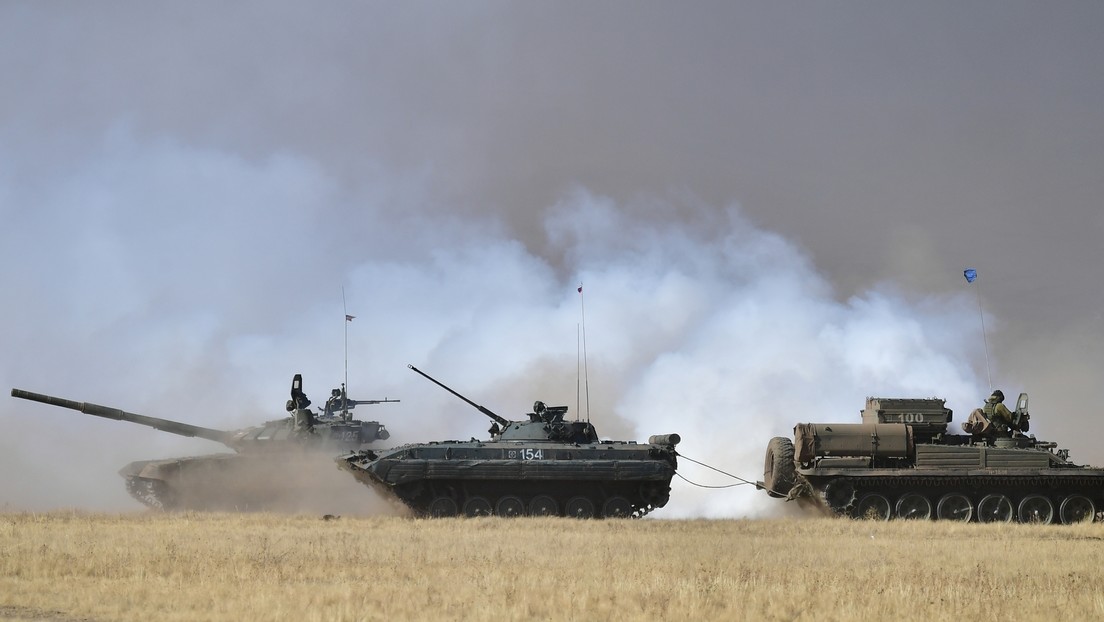 T72-B3, BMP-2 und Brem-1M beim Manöver der SCO in Orenburg, 23.09.2021