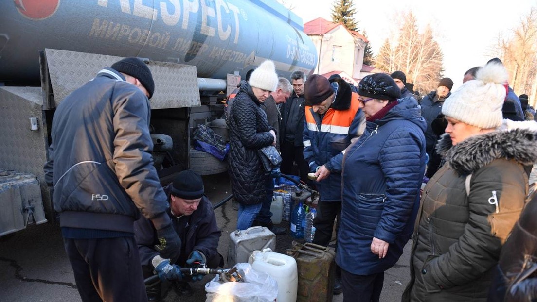 Wasserausgabe in Wolnowacha, Ende März 2022