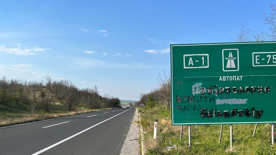 Schild an der Autobahn der "Freundschaft" in Nordmazedonien Bild: Marinko Učur