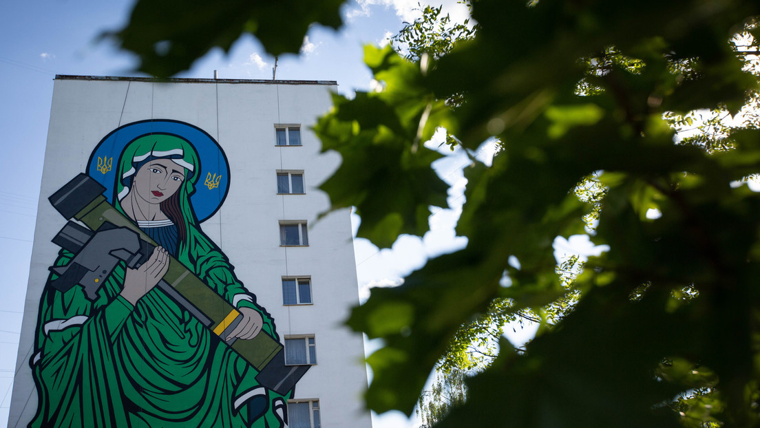 Propagandistische Wandmalerei der "heiligen Javelina" auf einem Wohnhaus in Kiew (Symbolbild)