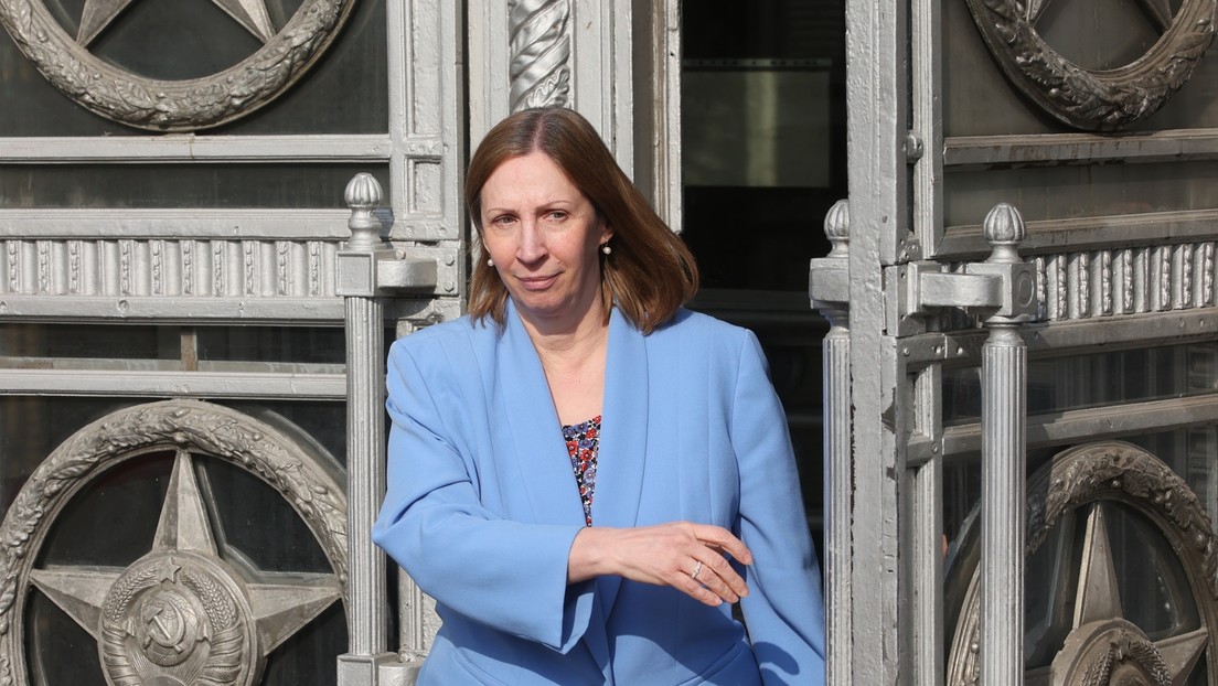Die Botschafterin Lynne M. Tracy der USA in Russland beim Verlassen des Gebäudes des russischen Außenministeriums am 18. April 2023 Bild: Sputnik / Witali Beloussow