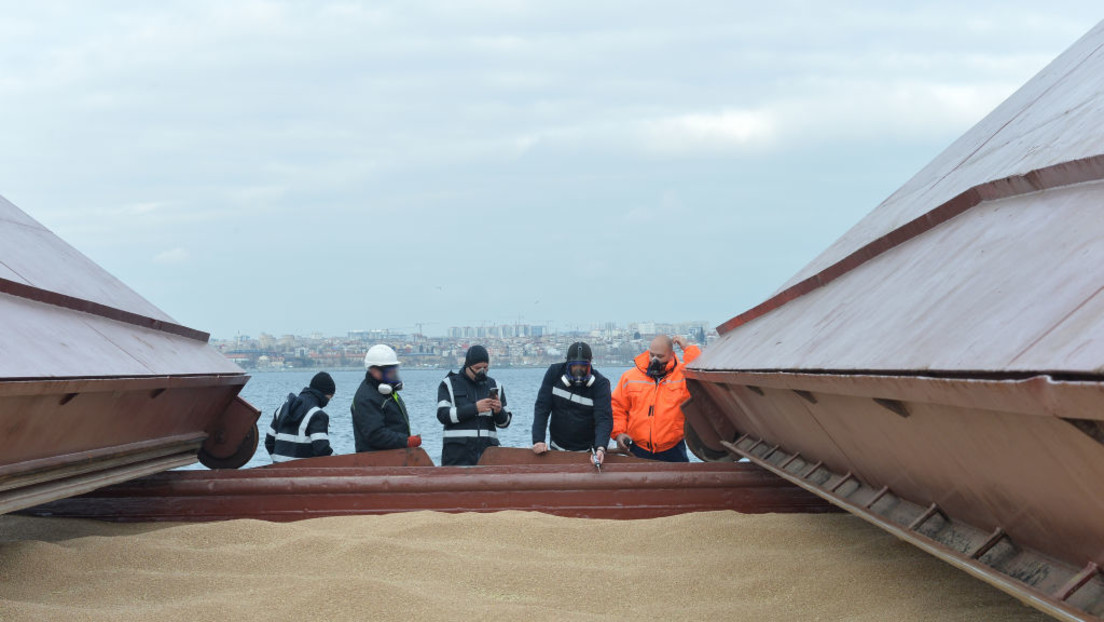 Ein Inspektorenteam kontrolliert die Fracht eines Getreidetransportes aus der Ukraine am 24. Januar 2023. Es handelte sich um das fünfte Schiff des Programms mit 16 Tonnen für Afghanistan bestimmten Weizens. Bild: Gettyimages.ru / Ministerium der nationalen Verteidigung der Türkei/Anadolu Agency