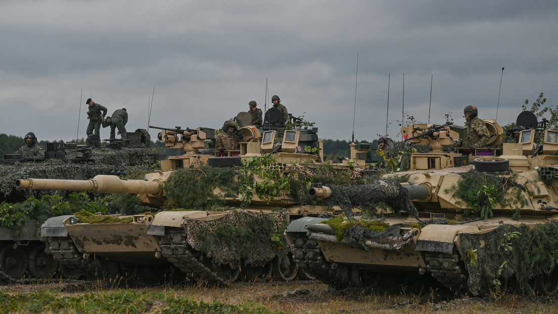 Die M1 Abrams, amerikanische Kampfpanzer der dritten Generation, sind auf dem Übungsgelände im polnischen Nowa Dęba bei Militärübungen "Bear 22" im September 2022 zu sehen. Bild: Gettyimages.ru / Artur Widak / Anadolu Agency
