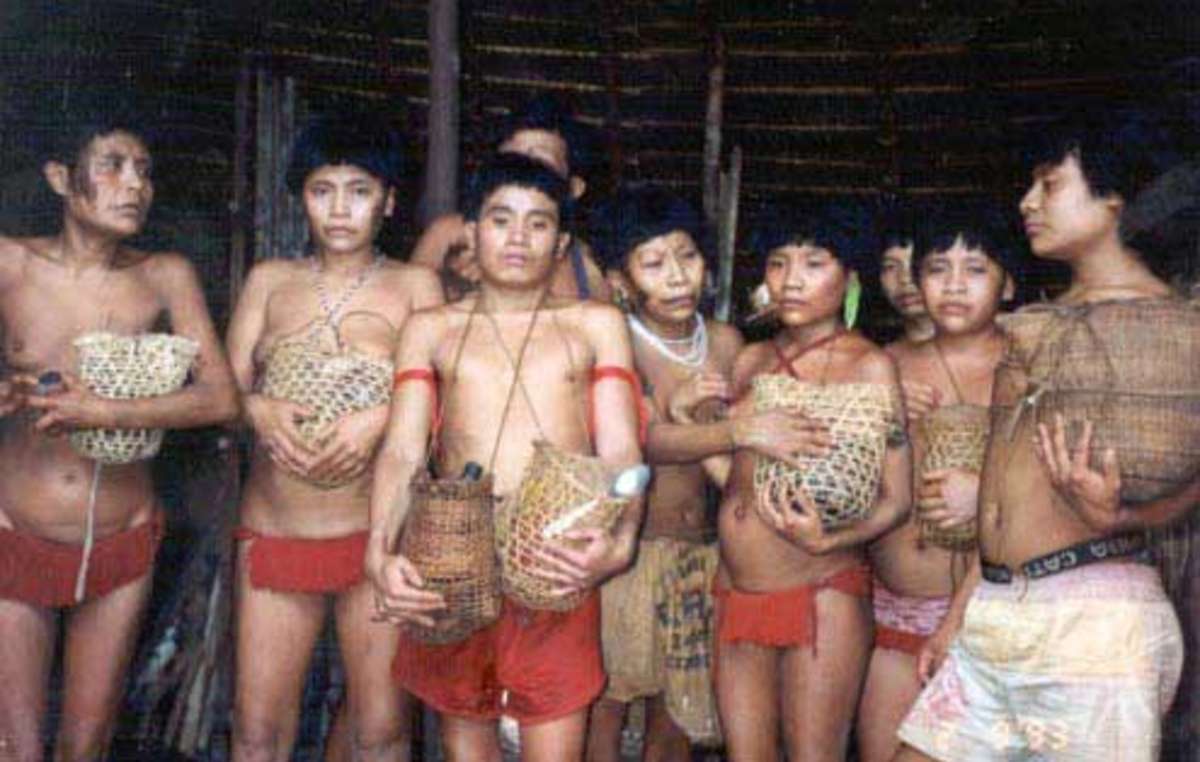 Überlebende des Haximu-Massakers von 1993 halten Urnen mit der Asche ihrer Verwandten. Goldschürfer töteten damals 16 Yanomami.