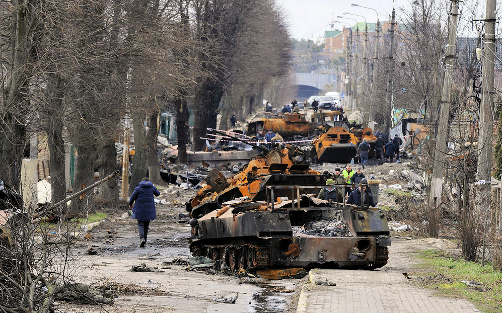 Zerstörte Fahrzeuge in Butscha - Ukraine am 4. April 2022