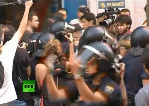 Screenshot aus dem Youtube Video "Video: Hundreds clash with riot police in Spain"