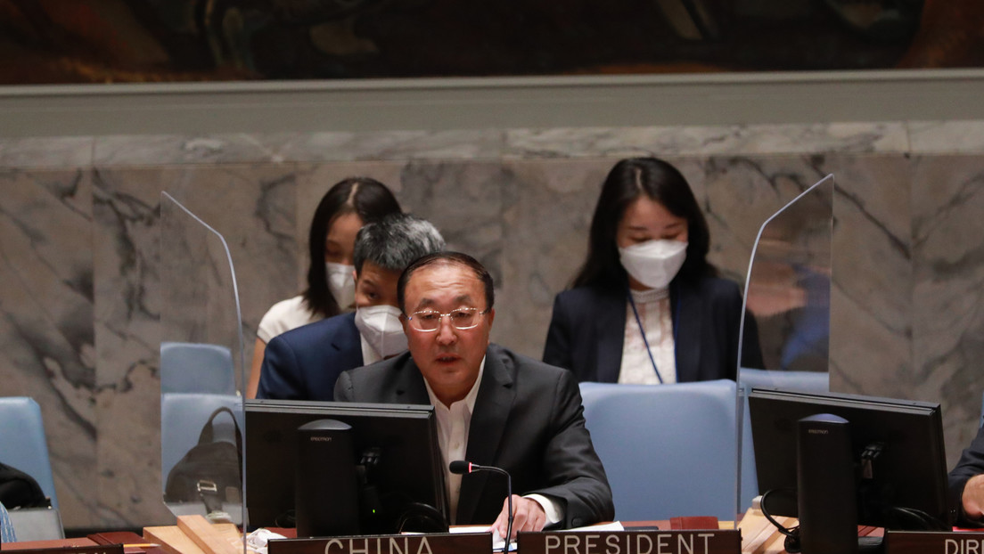 Zhang Jun, Chinas ständiger Vertreter bei den Vereinten Nationen, während eines Briefings des UN-Sicherheitsrates im UN-Hauptquartier in New York am 11. August 2022 Bild: www.globallookpress.com © Xie E/XinHua/ Global Look Press