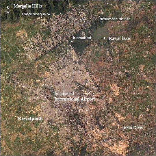 Islamabad und Rawalpindi aus der Luft; die Einteilung in Sektoren ist gut zu erkennen.