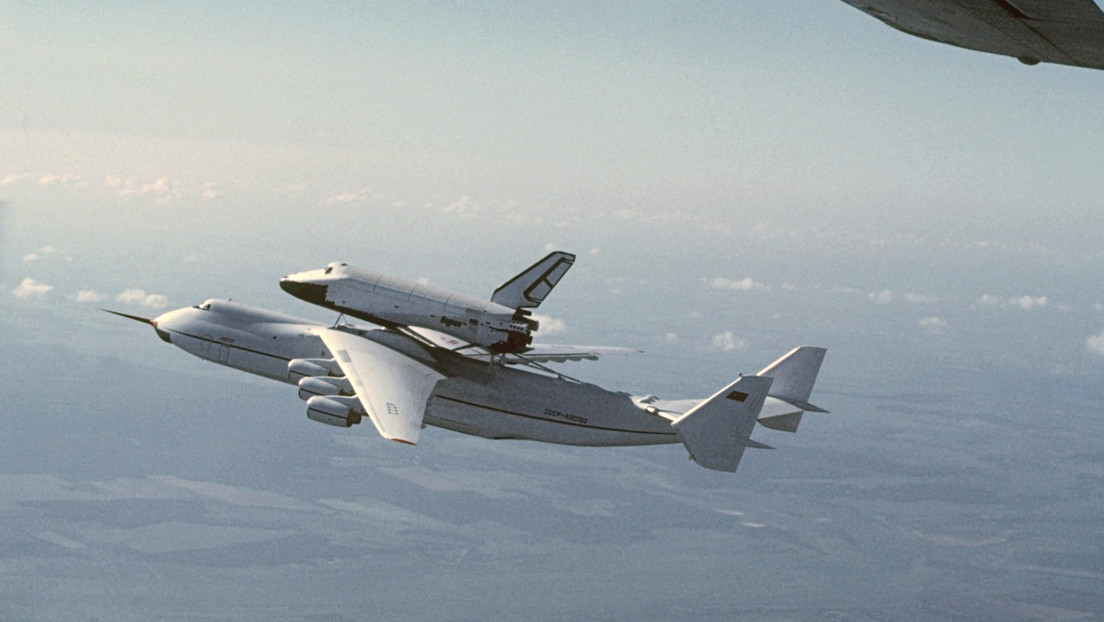 Das größte Frachtflugzeug der Welt, die Antonow An-225 Mrija (Traum), mit dem wiederverwendbaren Raumgleiter Buran huckepack bei einem Überführungsflug vom Kosmodrom Baikonur nach Kiew (19. Mai 1989) Bild: Sputnik / Igor Kostin/RIA Nowosti