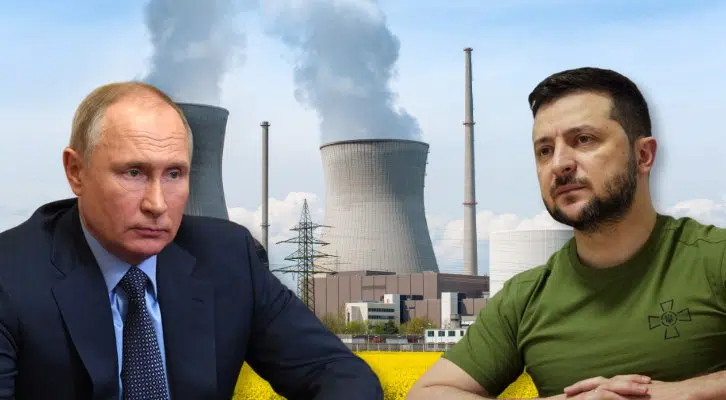 Bild: Symbolbild Atomkraftwerk: Canva; Putin: The Presidential Press and Information Office; Selenski: President.gov.ua (beide Wikimedia Commons, CC BY 4.0); Collage: Wochenblick / Eigenes Werk