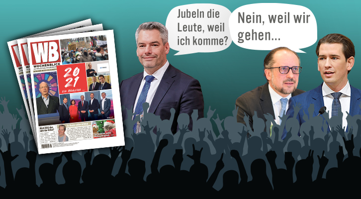 Bild: Massen/Freepik; Nehammer/Parlamentsdirektion, Thomas Topf; Schallenberg/Flickr, Bundesministerium für Finanzen, CC BY .0; Kurz/Parlamentsdirektion Zinner; Bildkomposition "Wochenblick"/Eigenes Werk