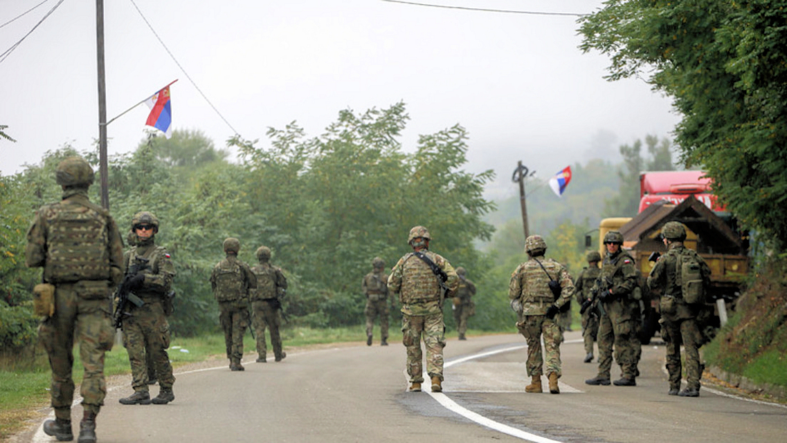Polnische KFOR-Soldaten in der Nähe der kosovo-serbischen Grenze in Jarinje (2. Oktober 2021)