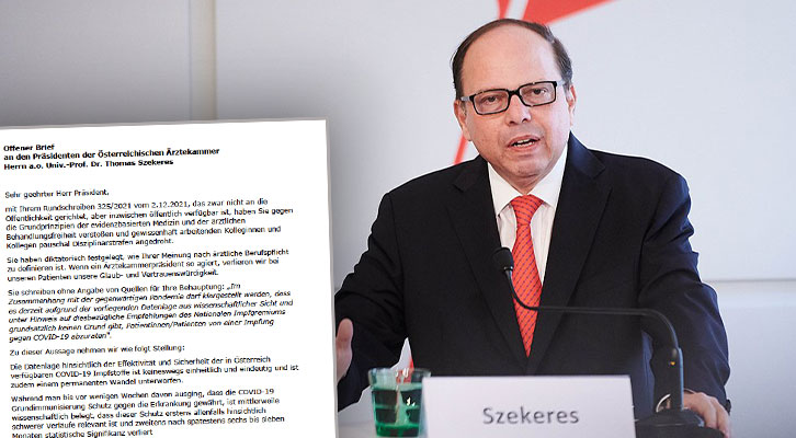Bild: Szekeres: © SPÖ-Parlamentsklub/Kurt Prinz; Wikimedia Commons, CC BY-SA 2.0; Offener Brief: Screenshot; Komposition: Wochenblick /Eigenes Werk