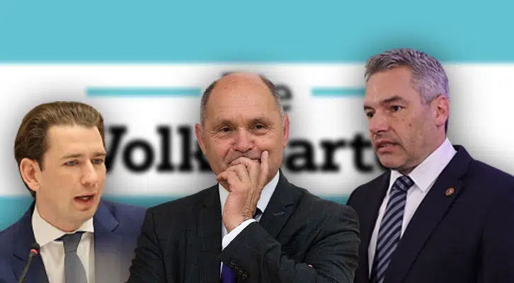 Bild: Hintergrund: ThecentreCZ, Public domain, via Wikimedia Commons; Kurz: European People's Party, CC BY 2.0, via Wikimedia Commons; Sobotka: Bernhard Holub, CC BY-SA 4.0, via Wikimedia Commons; Nehammer: European People's Party, CC BY 2.0, via Wikimedia Commons (alle drei freigestellt); Komposition: Wochenblick / Eigenes Werk