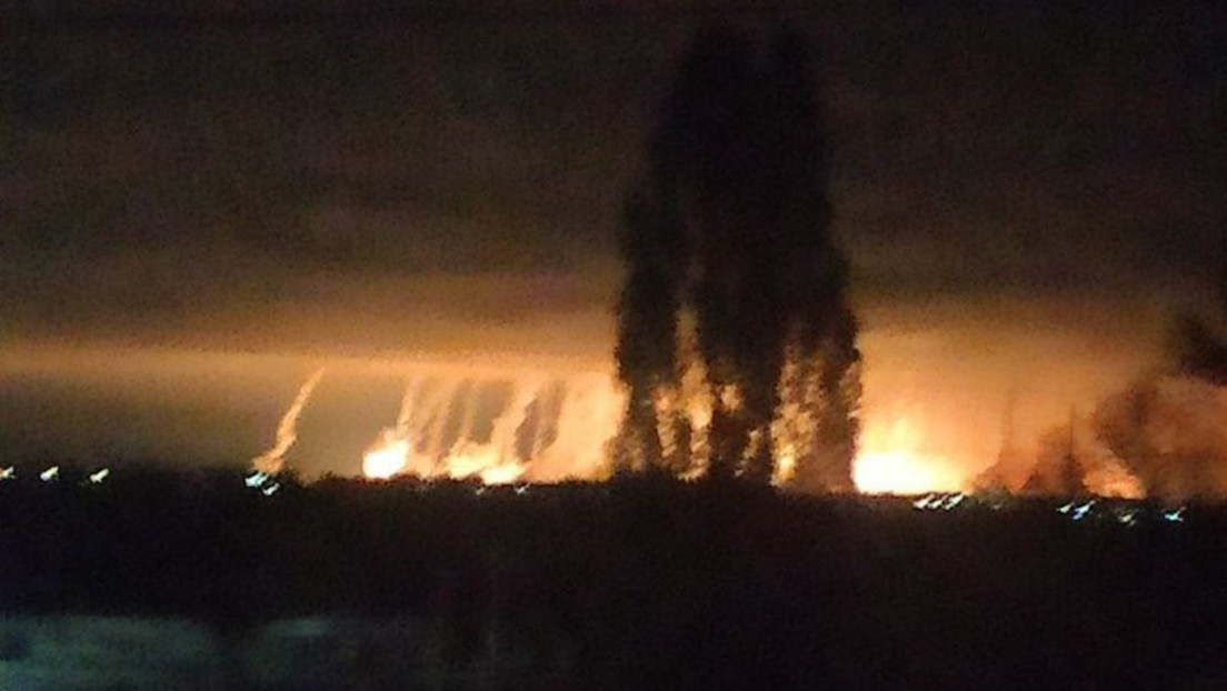 Explosion in Pawlograd in der Nacht auf den 1. Mai. 2023 Bild: Telegramkanal "Colonelcassad"