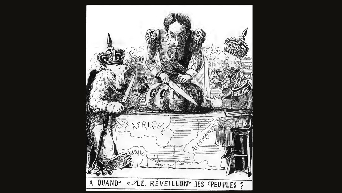 Eine Karikatur von 1884 zur Berliner Konferenz 1884, auf der Afrika aufgeteilt wurde Bild: François Maréchal, Public domain, via Wikimedia Commons