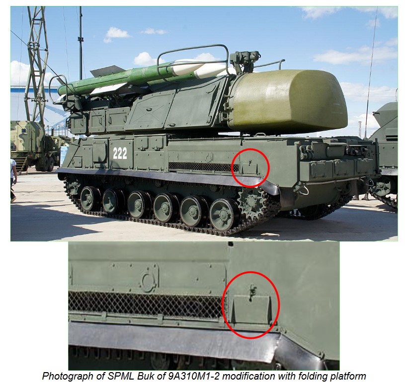 Die Buk-Modifikation9А310 9К37 ohne Klappstufe. Bild: Screenshot aus dem AntiBellingcat-Bericht.