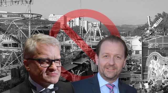 Bild: Luger & Baier: beide IMAGO / Rudolf GIgler; Hintergrund (Urfix 2006): NeoUrfahraner, Wikimedia Commons, CC BY-SA 3.0; Verbotszeichen: Pixabay; COllage: Wochenblick/Eigenes Werk