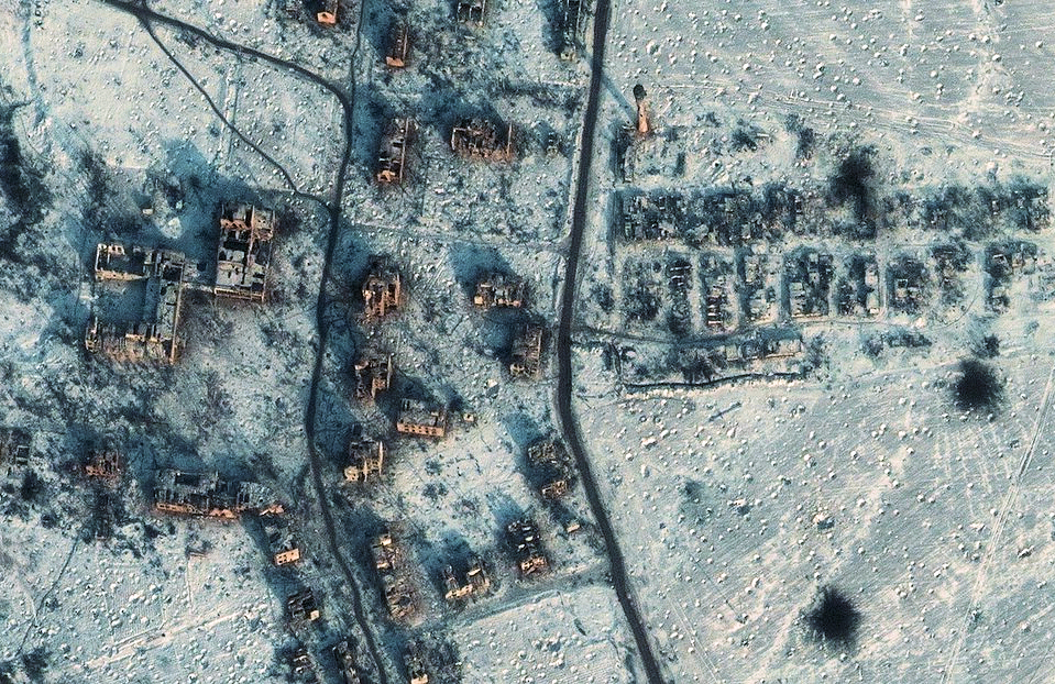 Zerstörte Häuser in Soledar – Satellitenaufnahme vom 11. Januar.