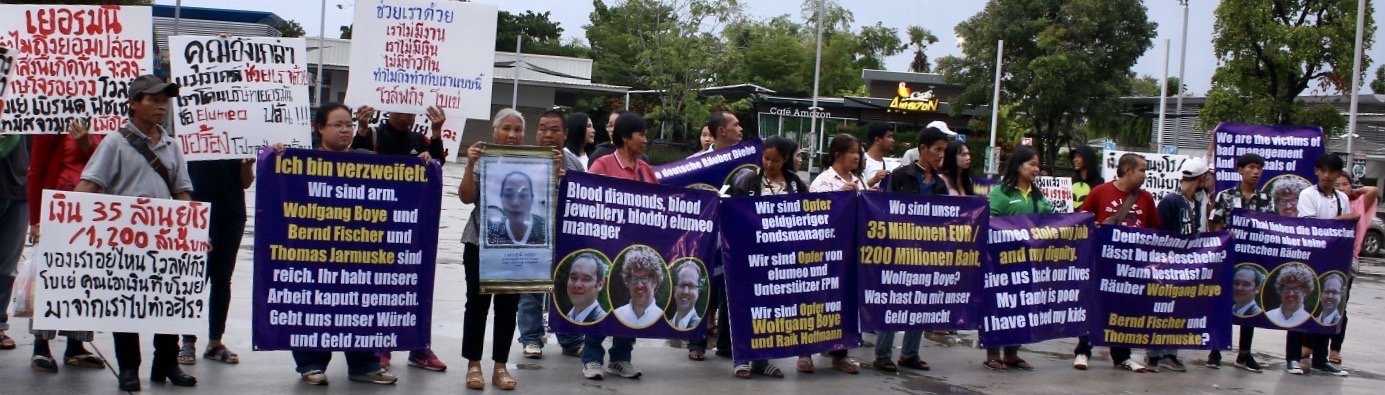 Über 600 Mitarbeiter der thailändischen PWK Jewelry Company Limited wurden arbeitslos, nachdem der deutsche Schmuckhandelskonzern elumeo SE über ihre Tochtergesellschaften Schmuck im Wert von mehr als 30 Millionen Euro bestellt, aber nur einen Bruchteil davon bezahlt hatte.Bild: "obs/Roderich Schätze/Privat"