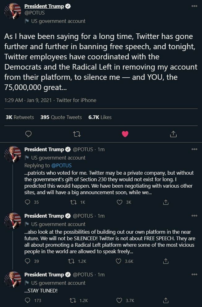 Screenshot von Donald J. Trumps letzte Worte auf Twitter