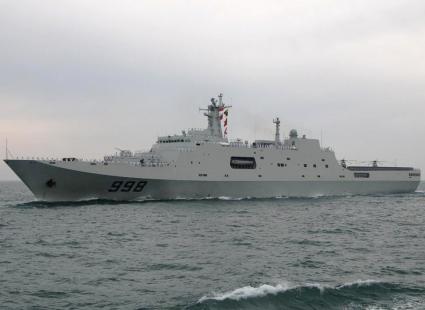 Docklandungschiffes Kunlunshan beendete den nationalen Anteil der Flottenparade. Bild: Kapitän zur See Markus Krause-Traudes