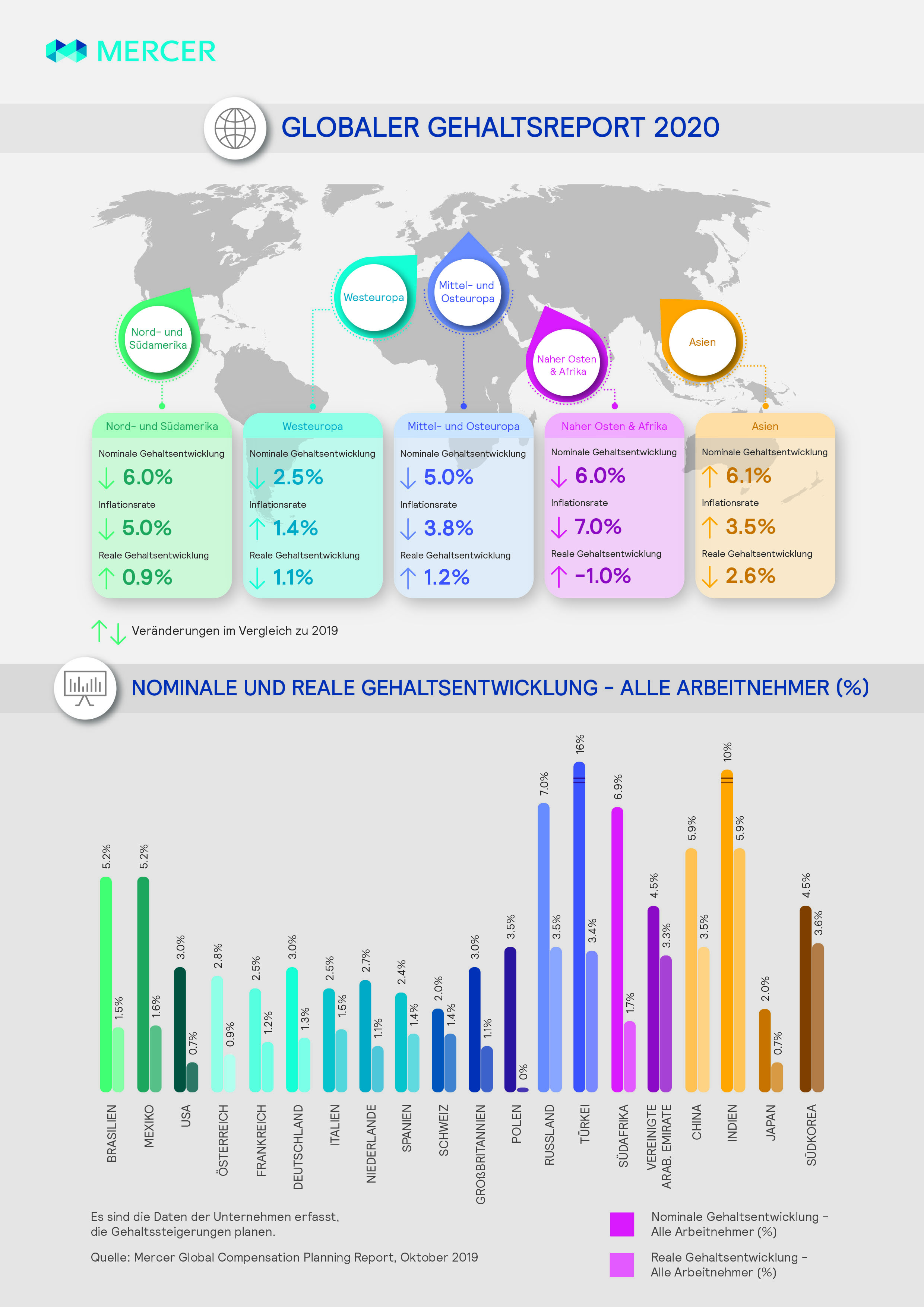 Zurück zu Gehaltszuwachs: Deutschland gehört auch 2020 zu den Schlußlichtern