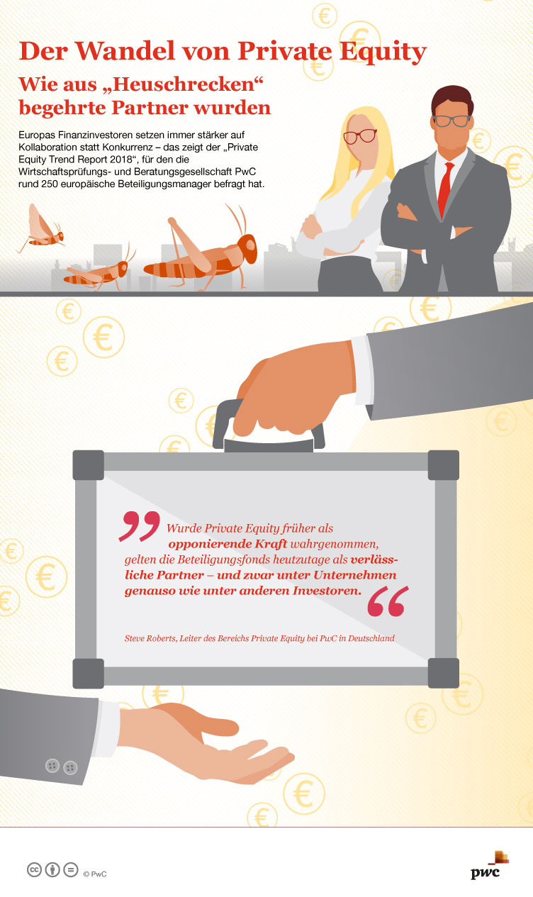 Der Wandel von Private Equity: Wie aus "Heuschrecken" begehrte Partner wurden. Bild: "obs/PwC Deutschland"
