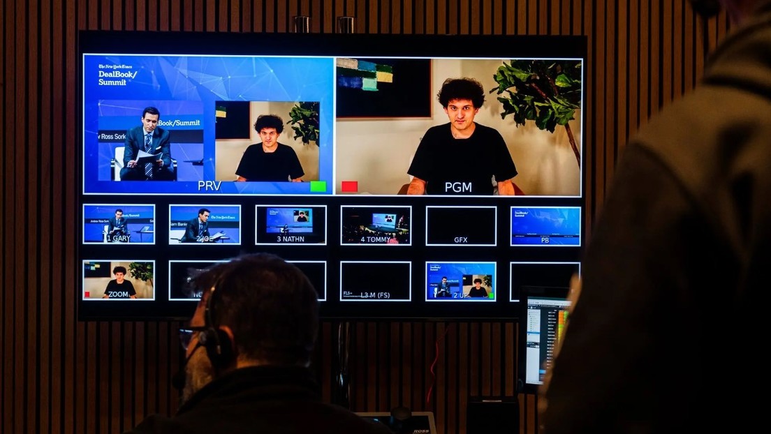 Sam Bankman-Fried als Zoom-Gast auf der DealBook-Konferenz der "New York Times", 30. November 2022 Bild: Screenshot: Webseite NYT-Hiroko Masuike / RT