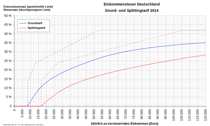 Einkommensteuersätze 2014 für Alleinstehende und Verheiratete in Deutschland