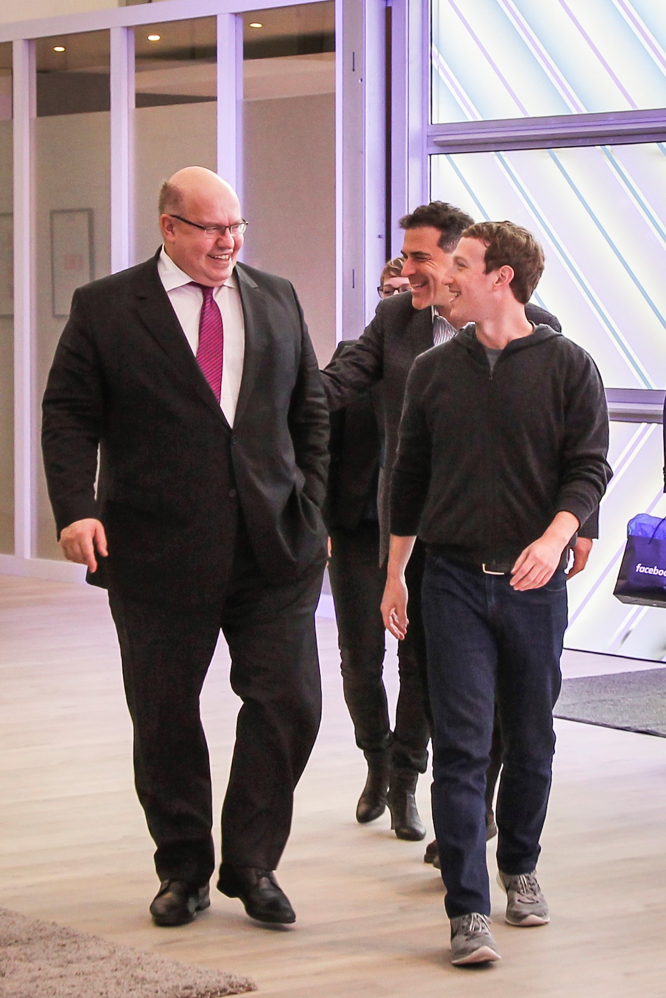 Peter Altmaier, Bundesminister für besondere Aufgaben und Chef des Bundeskanzleramtes, trifft Mark Zuckerberg, Facebook CEO, im Innovation Hub von Facebook in Berlin. Weiterer Text über ots und www.presseportal.de/nr/70271 / Die Verwendung dieses Bildes ist für redaktionelle Zwecke honorarfrei. Veröffentlichung bitte unter Quellenangabe: "obs/Facebook"