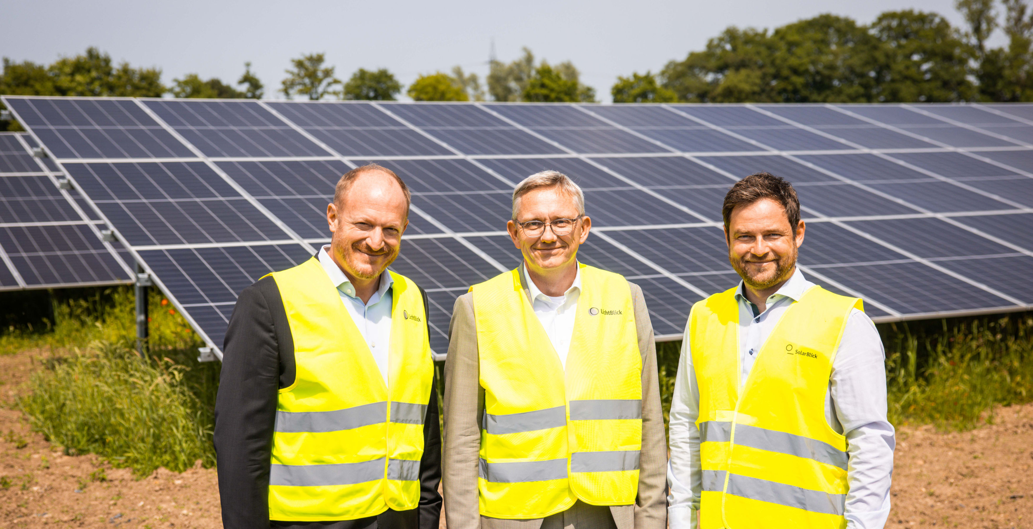 LichtBlick COO Dr. Enno Wolf mit Thomas Michels, COO bei BENTELER Steel/Tube und Bernhard Baumann, Geschäftsführer von SolarBlick (v. l. n. r.). (2025) Bild: Lichtblick SE Fotograf: LichtBlick SE