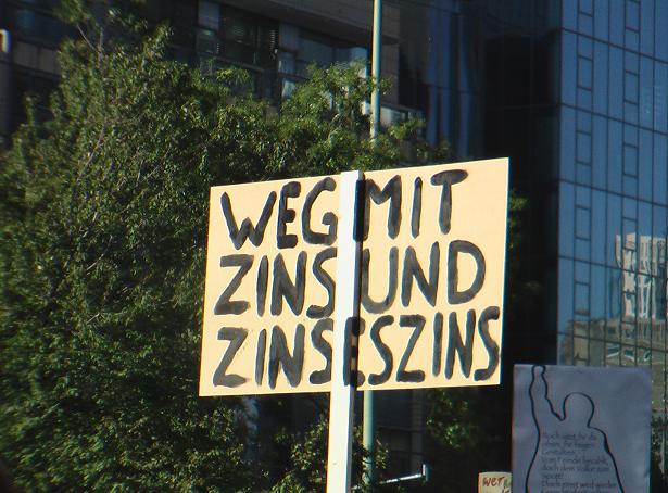 "Weg mit Zins und Zinseszins!" - Occupy Frankfurt Demo vor der Europäischen Zentralbank in Frankfurt