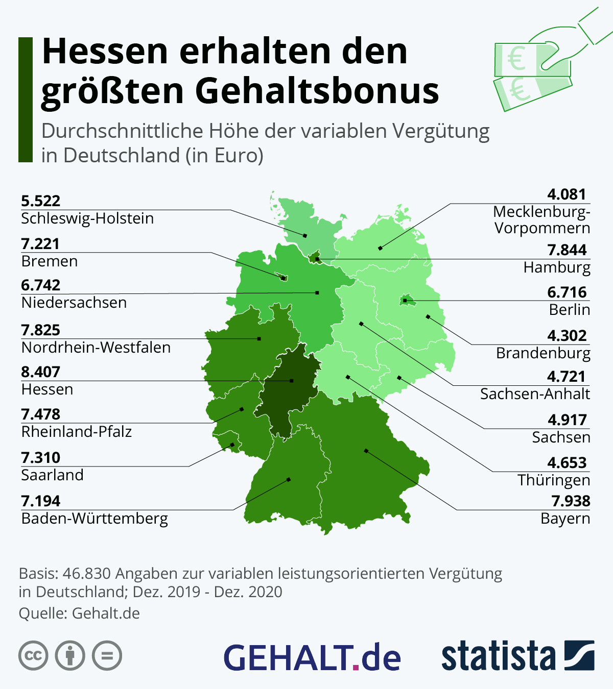 Durchschnittliche Höhe der variablen Vergütung in Deutschland Bild: Statista & GEHALT.de Fotograf: Gehalt.de