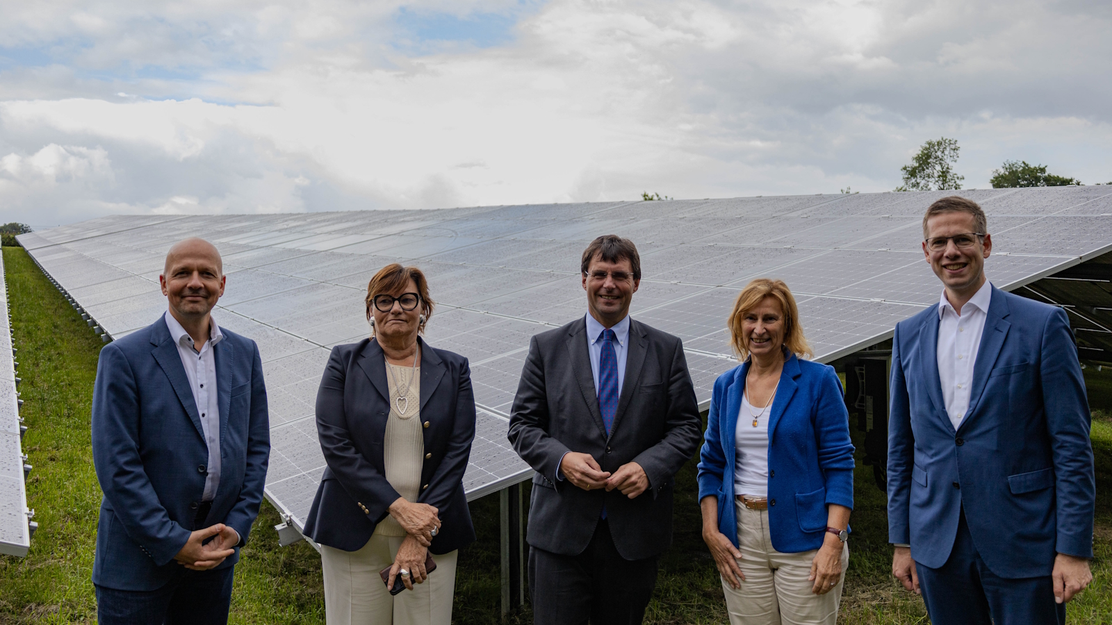 (v.l.): Andre Strube, BLB NRW-Niederlassungsleitung Düsseldorf, Gabriele Willems, BLB NRW-Geschäftsführerin, Dr. Marcus Optendrenk, Minister der Finanzen, Elke Kolfen, BLB NRW-Niederlassungsleitung Düsseldorf, Christoph Schultz, Bürgermeister Stadt Erkrath (2025) Bild: BLB NRW Fotograf: BLB - Bau- u. Liegenschaftsbetrieb NRW