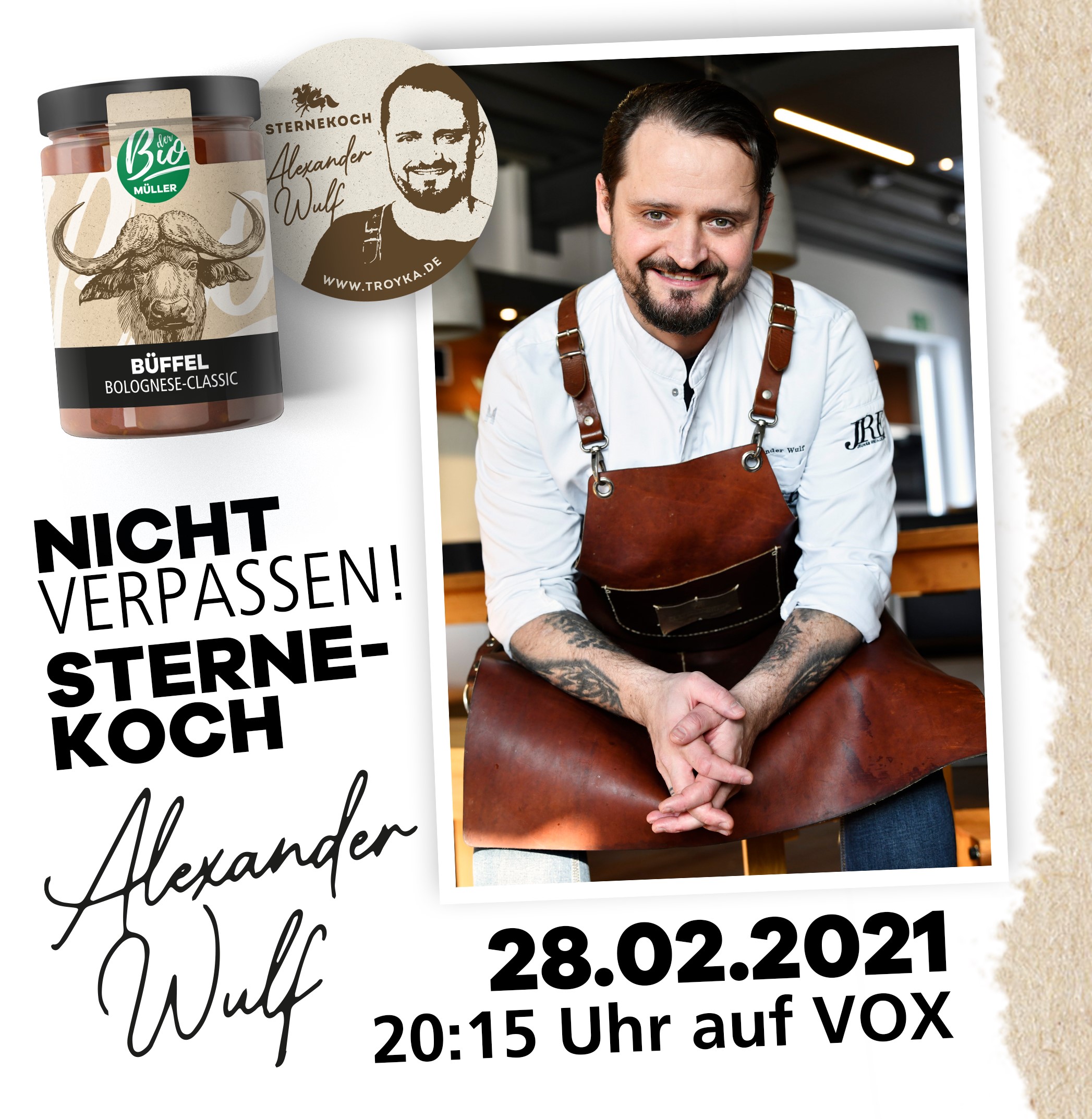 Michelin-Sternekoch Alexander Wulf kocht für das Label "der BioMüller" Bild: Landhaus Teigwaren Müller Fotograf: Landhaus Teigwaren Müller