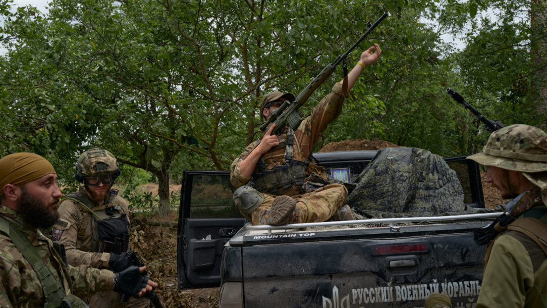 Ukrainische Soldaten und ausländische Kämpfer in Mykolajiw, Ukraine, Juni 2022. Bild: Gettyimages.ru / Pierre Crom / Kontributor