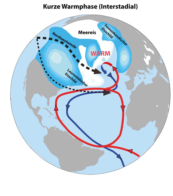 Abbildung B: Die Nordhalbkugel im „Interstadial“ (kurze, warme Zwischenphasen während der Eiszeit) Quelle: Alfred-Wegener-Institut (idw)