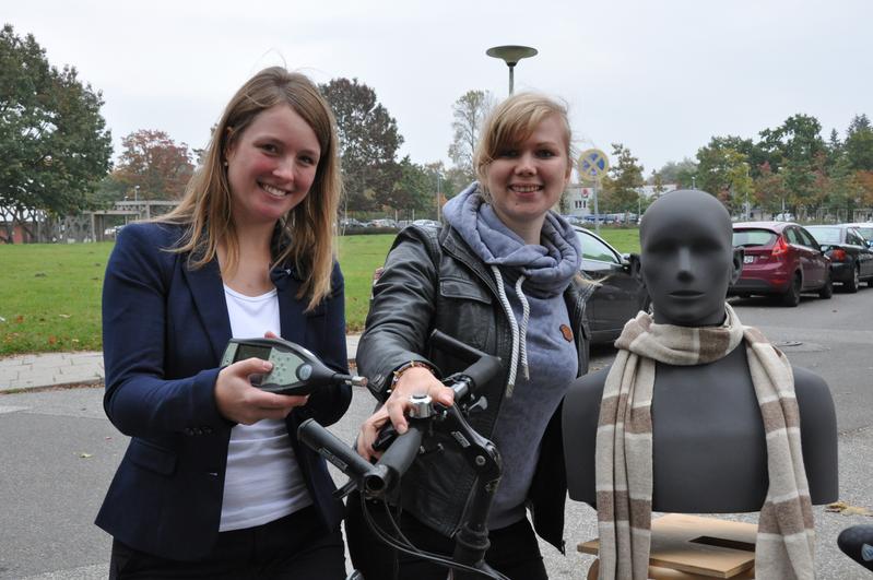 Die Hörakustikerinnen Lea Hartkens (Rechts) und Mareike Hestermann mit dem Kunstkopf Quelle: Foto: Pressestelle FH Lübeck (idw)
