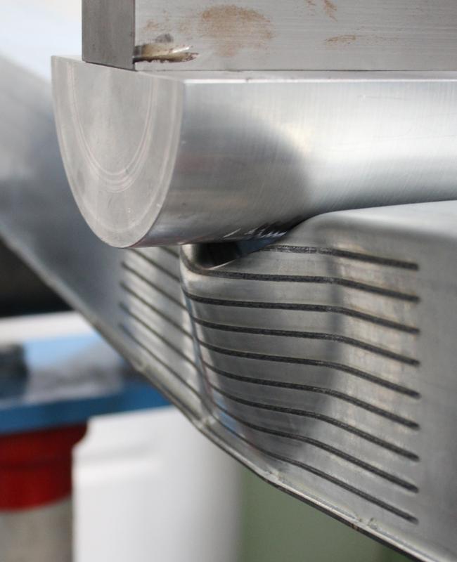 Bei diesem Crashtest wird geprüft, wie stark sich das Beispielbauteil unter einer Biegebelastung def Quelle: © Fraunhofer IWS (idw)