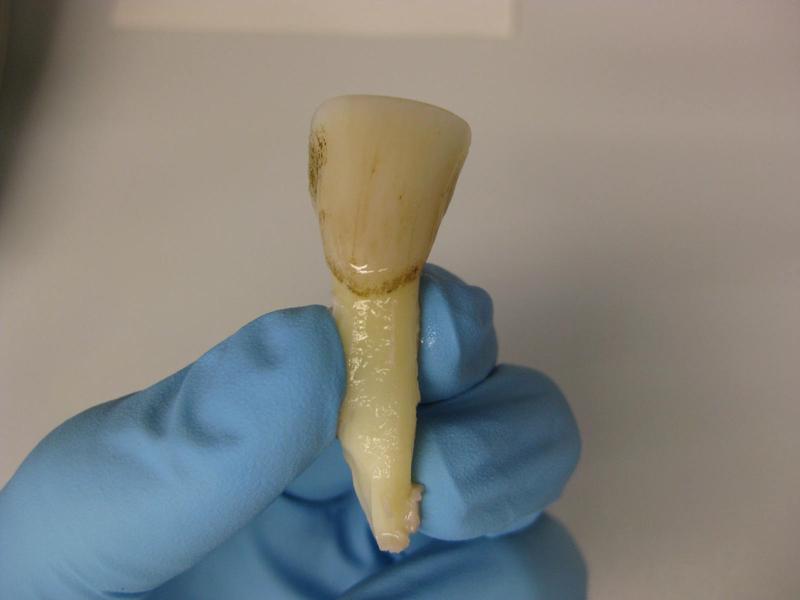 Auf den Zahn gefühlt: Anhand speziell präparierter Rinderzähne entwickelten Forscher des Universitätsklinikums Freiburg einen neuen Drogentest.Quelle: Neukamm/Universitätsklinikum Freiburg (idw)