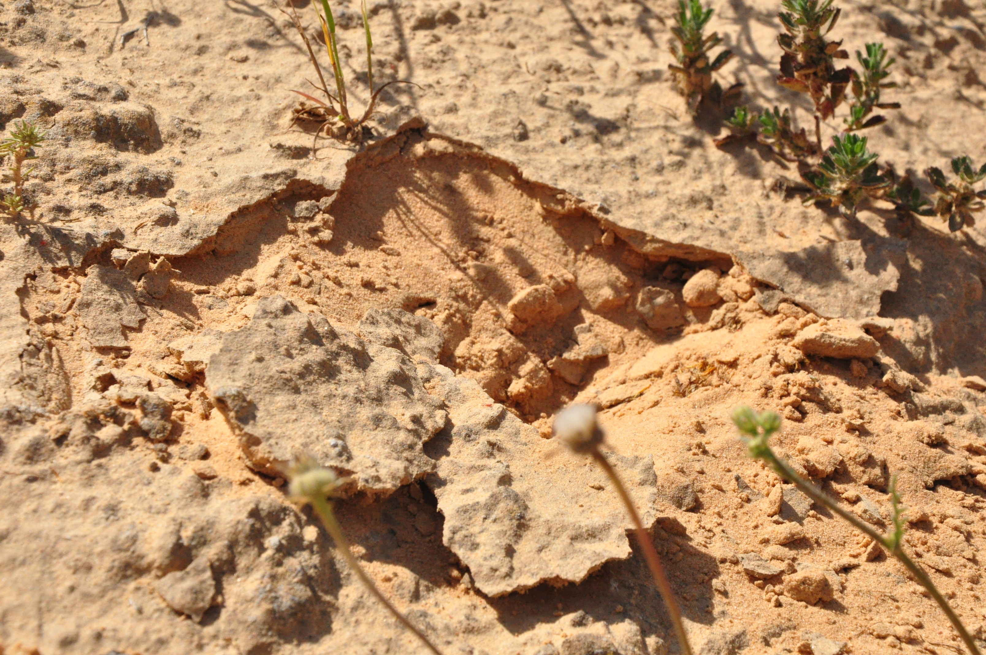 Wüstenbiologische Sandkrusten aus dem Nizzana-Gebiet in der rauen Negev-Wüste, von wo die Alge Chlorella ohadii stammt.