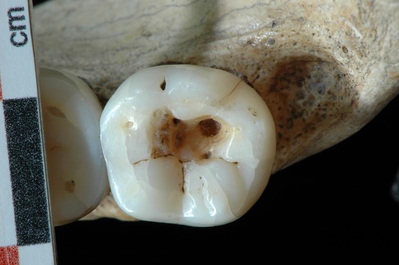 Loch im rechten unteren dritten Backenzahn (Weißheitszahn) des Spätpaläolithischen Individuums aus Villabruna. Quelle: S. Benazzi (idw)