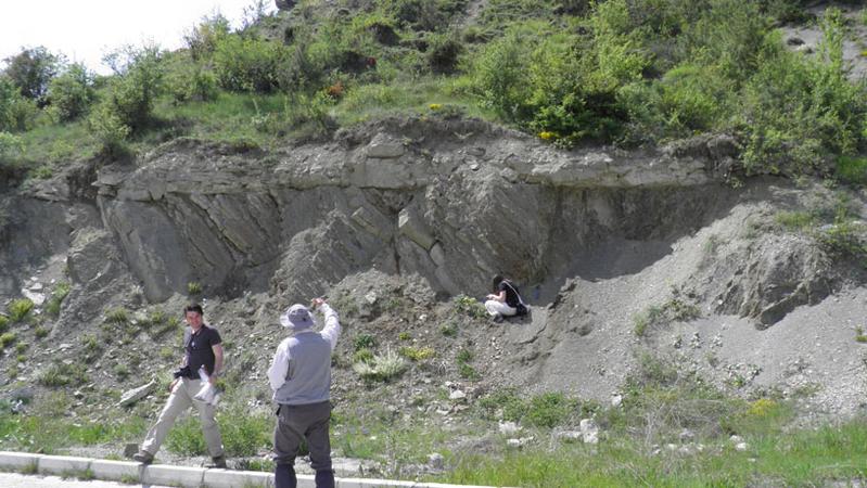 Die ForscherInnen bei einer Auflagerung anthropogener Ablagerungen des Anthropozäns auf Kreidesedimenten in der Nordwest-Türkei. Quelle: Copyright: Michael Wagreich, Universität Wien (idw)