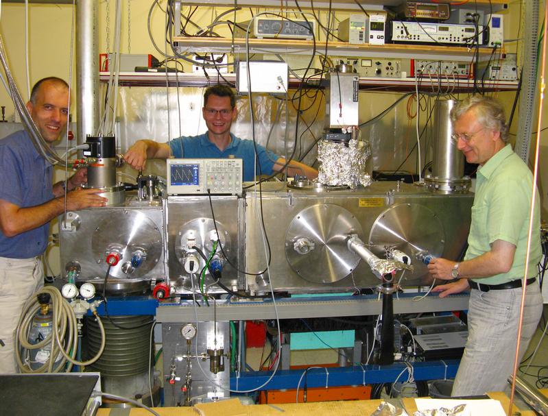 Das erfolgreiche Physiker-Trio (v.l.n.r.): Carlo Callegari, Markus Koch und Wolfgang Ernst. Bild: TU Graz