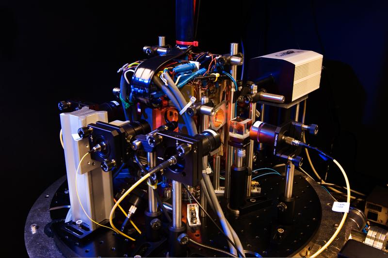 Experimenteller Aufbau zum Einfangen von atomaren Wolken mit Mikrochips. Bild: Max Riedel, LMU München