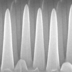 Nano-Struktur: Winzige Kegel verleihen Glas neue Eigenschaften. Bild: MIT