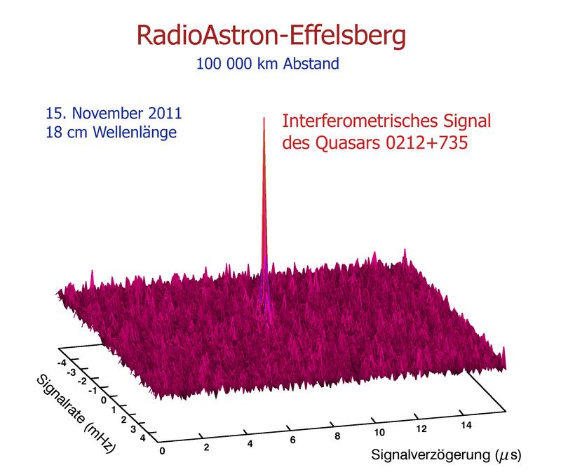 Erstes interferometrisches Signal ("fringe") zwischen Spektr-R und dem 100-m-Radioteleskop Effelsberg. Quelle: Astro Space Center of Lebedev Physical Institute, Russian Academy of Sciences (idw)