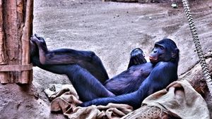 Schimpanse: faulenzt, dumm ist er aber nicht. Bild: pixelio.de, Anja Skeide
